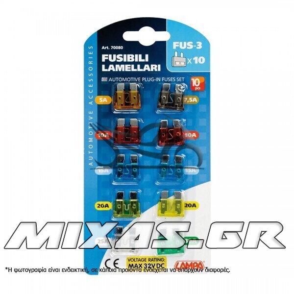 Περιέχει 1x5A - 1x7,5A - 2x10A - 2x15A - 2x20A - 1x25A - 1x30A