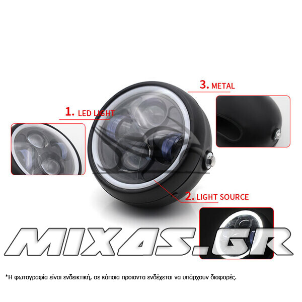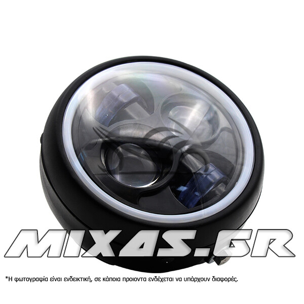 ΦΑΝΑΡΙ ΕΜΠΡΟΣ ΣΤΡΟΓΓΥΛΟ UNIVERSAL ANGEL EYES RETRO STYLE 5.75inch 12v LED ΜΑΥΡΟ MS-PARTS